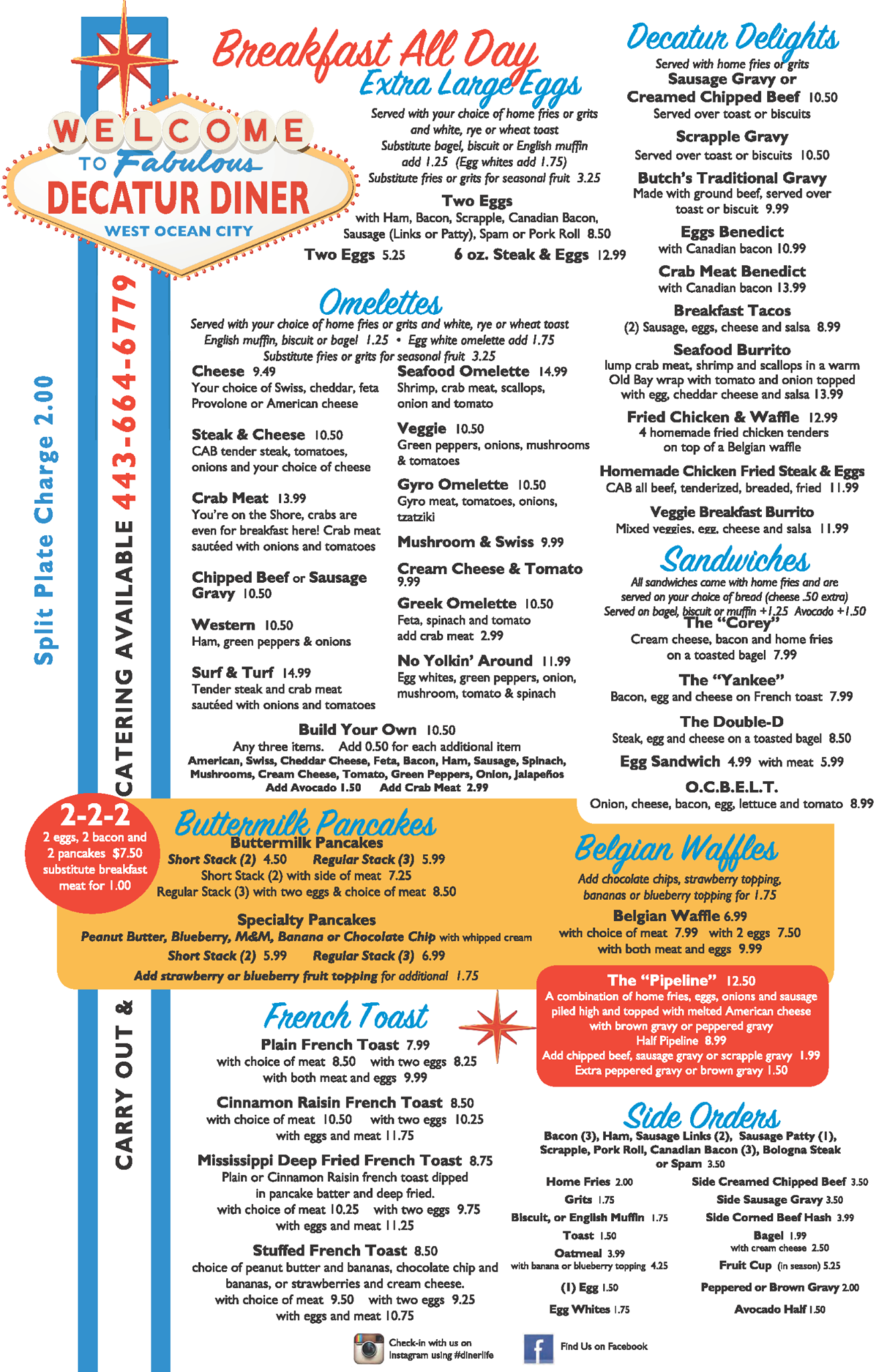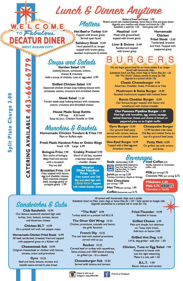 Welcome to the fabulous Decatur Diner in West Ocean City, MD! Our free standing, retro style diner has quickly become a local landmark and popular destination stop for thousands of resort visitors and local residents looking for a freshly made home cooked meal.