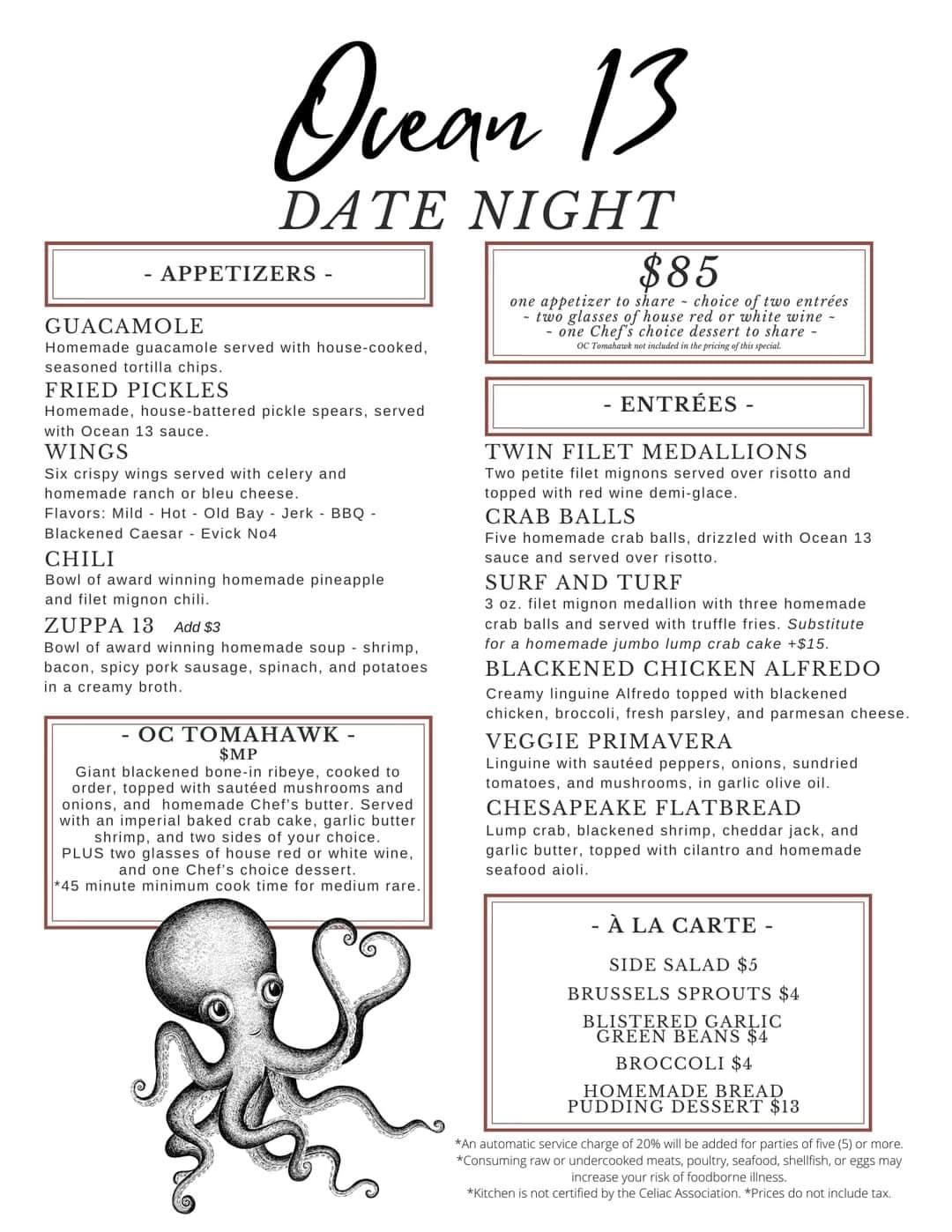 Ocean 13 offers fresh seafood dishes, tacos, burgers and signature salads that will delight any appetite. From our carefully thought out menu to our handcrafted cocktails and 23 flavor ice cream shoppe, we have it all.
